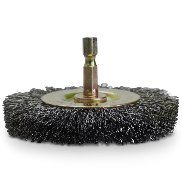 - JOSCO 75MM CRIMPED 6.3MM HEX SHANK WHEEL BRUSH