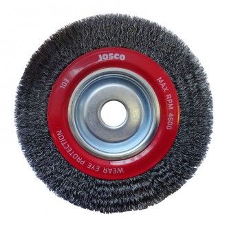 JOSCO WHEEL BRUSHES WITH CRIMPED WIRE ARE SUITABLE FOR BENCH GRINDERS. CRIMPED WIRE CONSTRUCTION ALLOWS FOR SOFTER BRUSHING & LIGHT PAINT & RUST REMOVAL.