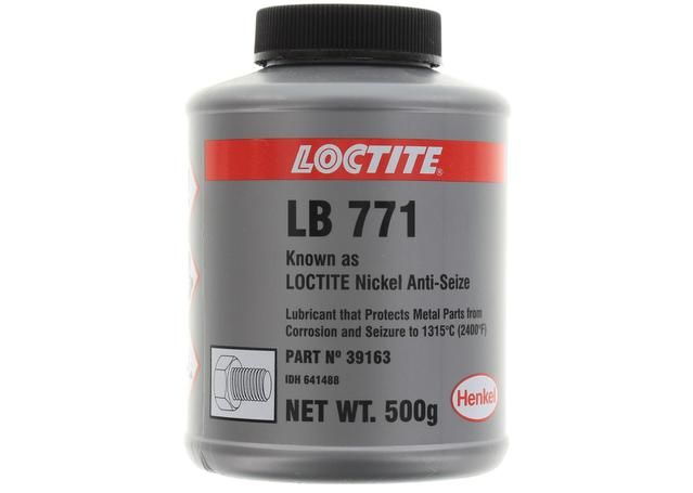 LOCTITE® LB 771 IS A SILVER, THICK, METALLIC HEAVY-DUTY, HIGH TEMPERATURE, NICKEL-BASED ANTI-SEIZE LUBRICANT PASTE. IT RESISTS GALLING & CORROSION & REDUCES WEAR IN HEAVY PRESSURE APPLICATIONS. CONTAINS TENACIOUS METALS, OILS & GRAPHITE MATERIALS.