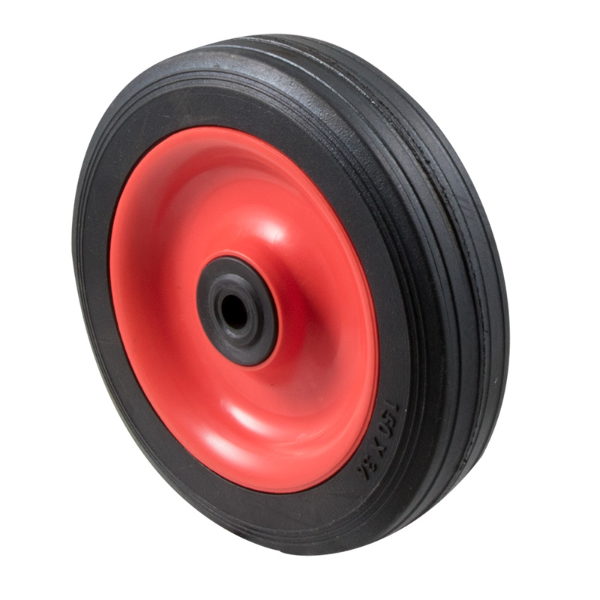 Specifications:· WHEEL MATERIAL: RUBBER· BEARINGS: PLAIN· LOAD CAPACITY: 75KG· RIM: PLASTIC CENTRED· DIAMETER X TREAD: 150 X 38MM