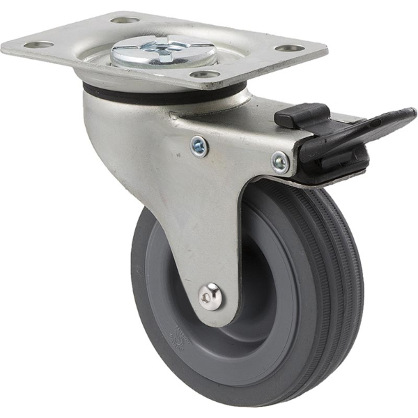 THE KSA75/KZPTB CASTOR HAS A GREY RUBBER (FLAT PROFILE) WHEEL WITH A DIAMETER OF 75 MM, & A MAXIMUM LOAD CAPACITY OF 50 KG PER CASTOR.