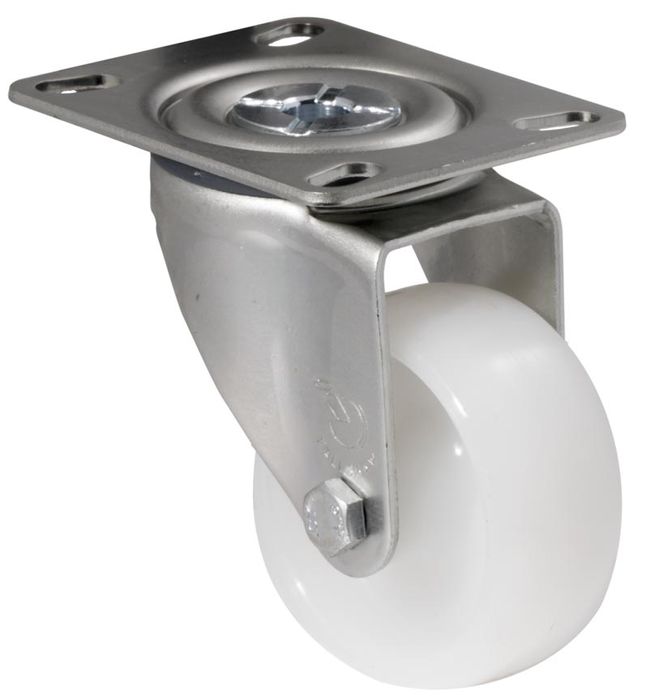 Specifications:· WHEEL MATERIAL: NYLON· WHEEL COLOUR: WHITE· LOAD CAPACITY: 150KG· BEARINGS: PLAIN· BRAKE TYPE: NO BRAKE