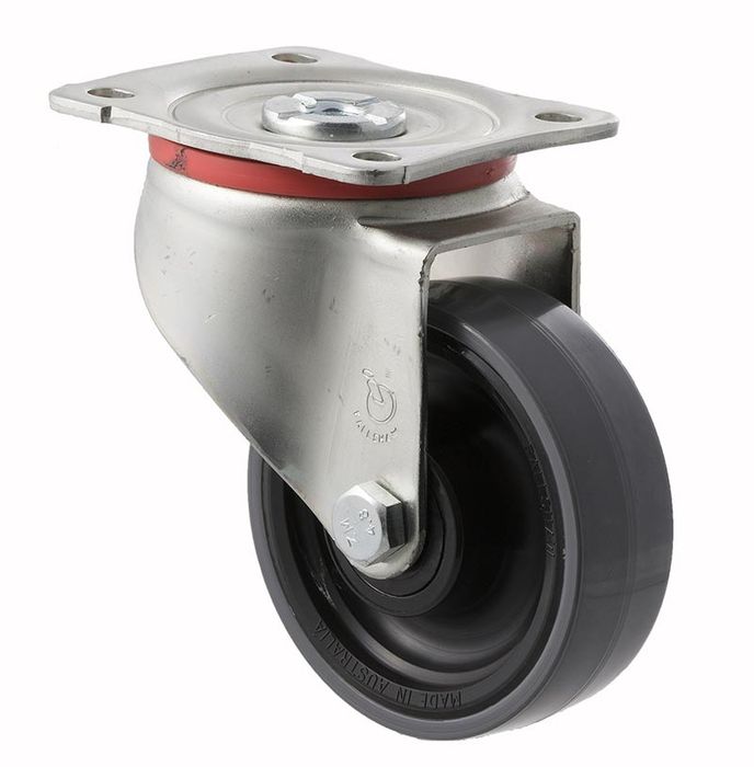 THE JUR100/JZP CASTOR HAS A POLYURETHANE WHEEL WITH A DIAMETER OF 100 MM, & A MAXIMUM LOAD CAPACITY OF 300 KG PER CASTOR.
