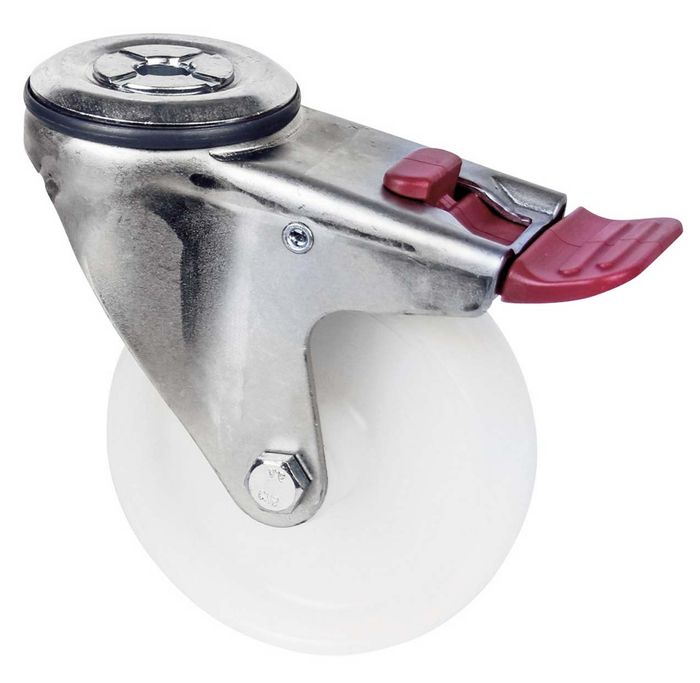 Specifications:· WHEEL MATERIAL: NYLON· WHEEL COLOUR: WHITE· LOAD CAPACITY: 150KG· BEARINGS: PLAIN· BRAKE TYPE: TOTAL BRAKE