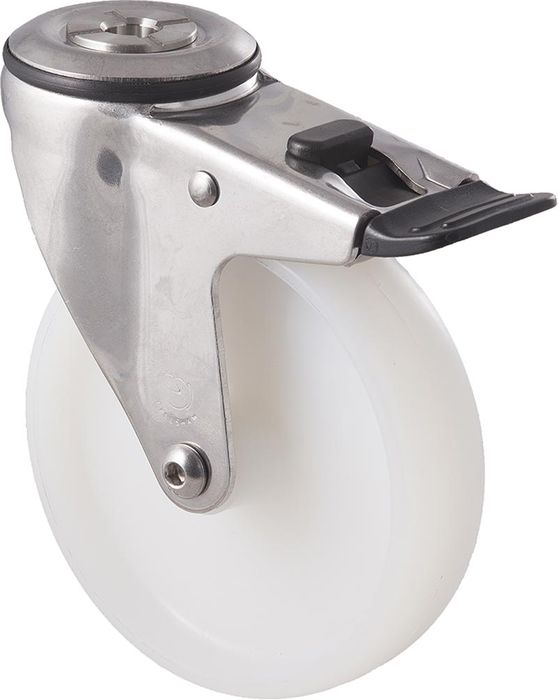 Specifications:· WHEEL MATERIAL: NYLON· WHEEL COLOUR: WHITE· LOAD CAPACITY: 150KG· BEARINGS: PLAIN· BRAKE TYPE: TOTAL BRAKE