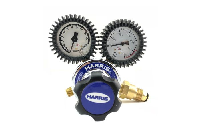 - HARRIS MODEL 825 FLOW CONTROL ANTI-SUGRE SIDE INLET REGULATOR - 0 - 30LPM - ARGON/CO2