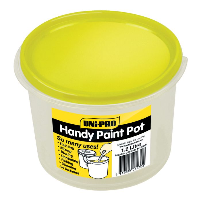 - UNI PRO HANDY CLEAR PLASTIC PAINT POT / BUCKET & YELLOW LID - 1.2LTR