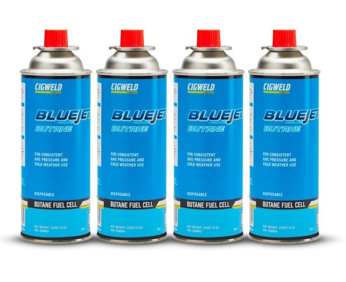 CIGWELD BLUEJET BUTANE 220G - 4PACK BAYONET CONNECTION