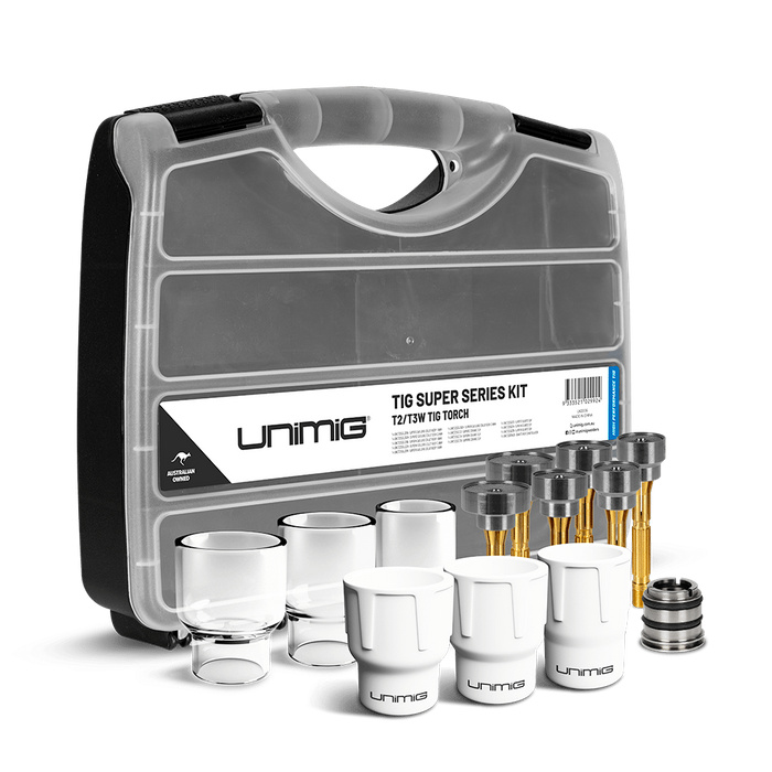 Includes:SEE UNIMIG WEBSITE FOR FULL KIT INCLUSIONS: https://unimig.com.au/product/t2-tig-torch-super-series-kit-u42006/