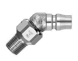 ROTARY NECK PLUG FOR HOSE CONNECTION TO PNEUMATIC TOOLS & PNEUMATIC DEVICES. FITS AT 45° ANGLE TO THE TOOL ELIMINATING ANNOYING OFFSET LOAD CAUSED BY CONNECTED HOSE.