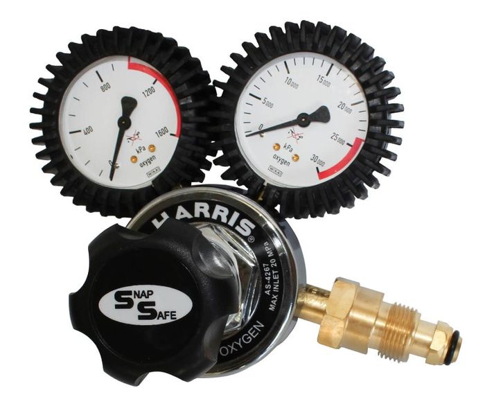 - HARRIS MODEL 825 SNAP SAFE SIDE INLET REGULATOR - 0-1000KPA - OXYGEN