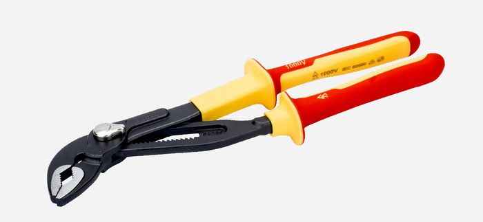 INSULATED QUICK-ADJUST WATER PUMP PLIERS WITH DUAL-COMPONENT HANDLE. UP TO 35% BIGGER MOUTH OPENING COMPARED TO MARKET STANDARD. STURDY BOX JOINT FRAME AND SLIM DESIGN