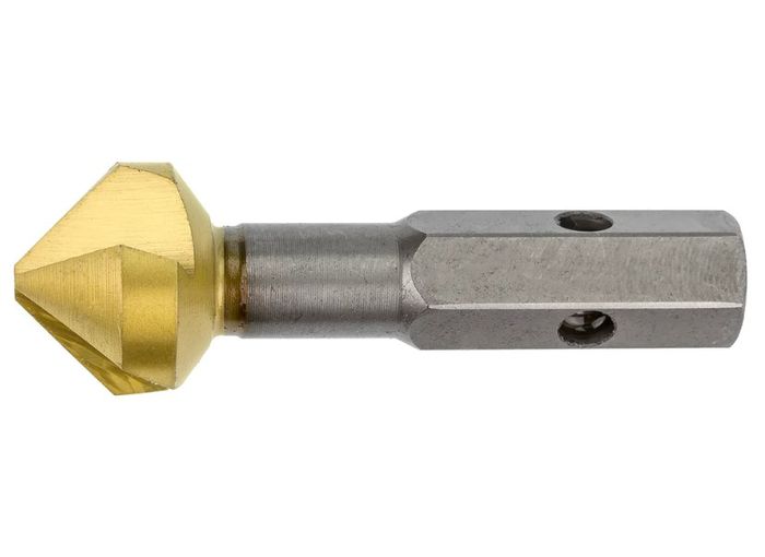 THE VERSADRIVE COUNTERSINK IS A PREMIUM QUALITY COUNTERSINK WITH FULLY GROUND FLUTES AND TITANIUM COATING TO HELP REDUCE WEAR AND BLUNTING.