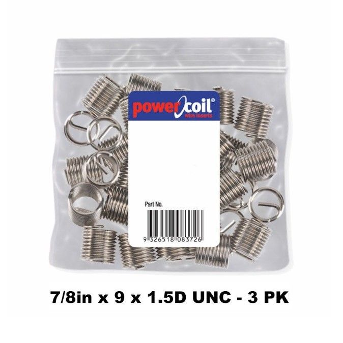 - POWERCOIL 7/8" X 9 X 1.5D UNC 3 PACK WIRE THREAD INSERTS