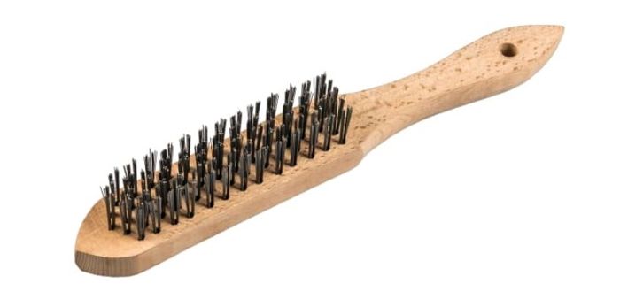HAND BRUSH WITH WOODEN HANDLE FOR MANUAL REMOVAL OF RUST, DIRT, PAINT