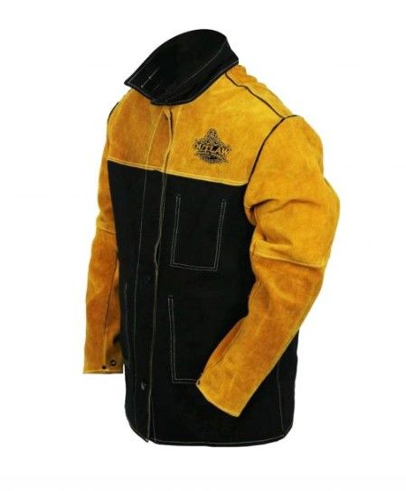 Features:THE SLEEVES AND SHOULDERS ARE MADE OF DURABLE "A" GRADE LEATHER TO WITHSTAND THE EXPOSURE TO WELDING SPATTER. HEAVY DUTY FIRE RESISTANCE JEANS FABRIC (BLACK). THREE INSIDE POCKETS. KEVLAR THREADED - STRONGEST AND MOST HEAT RESISTANT.