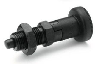 - M8 BLACKENED STEEL INDEXING PLUNGER WITH PLASTIC KNOB & LOCK NUT (WITH REST POSITION)