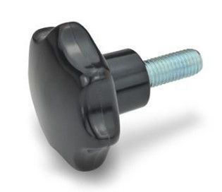 - M6 X 45 BLACK SHINY STAR KNOB, D/PLAST - WITH STEEL THREADED STUD