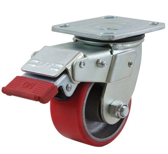 - RICHMOND 100MM POLYURETHANE TYRED CAST IRON CENTRED WHEEL 250KG CAPACITY CASTOR SWIVEL WITH LOCK & BRAKE (S4400SLB)