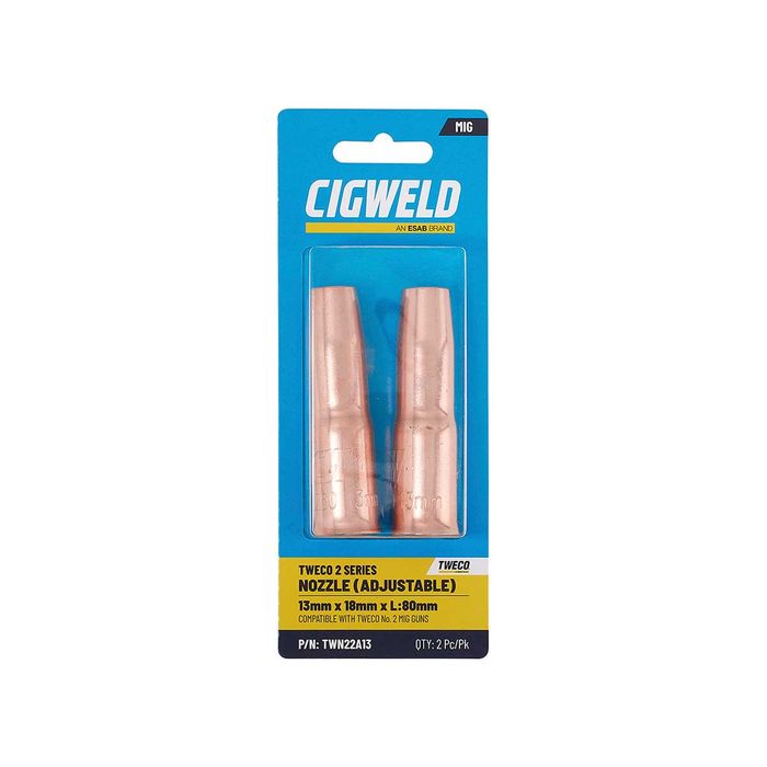 - CIGWELD TWECO 2 SERIES NOZZLE (ADJUSTABLE) 13MM X 18MM X L:80MM 2PK