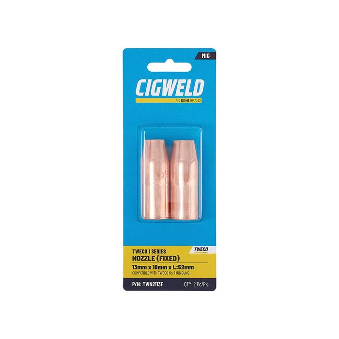 - CIGWELD TWECO 1 SERIES NOZZLE (FIXED) 13MM X 18MM X L:52MM 2PK