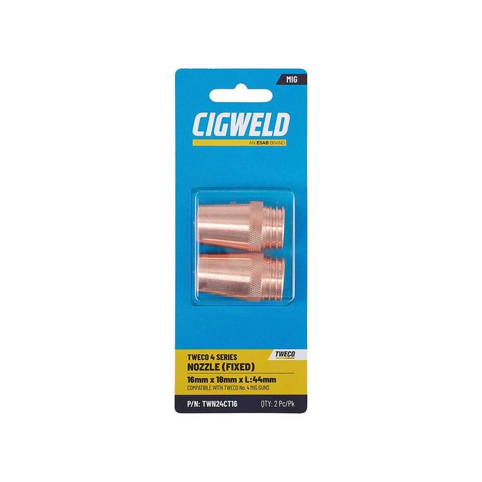 - CIGWELD TWECO 4 SERIES NOZZLE (COURSE THREAD) 16MM X 18MM X L:44MM 2PK