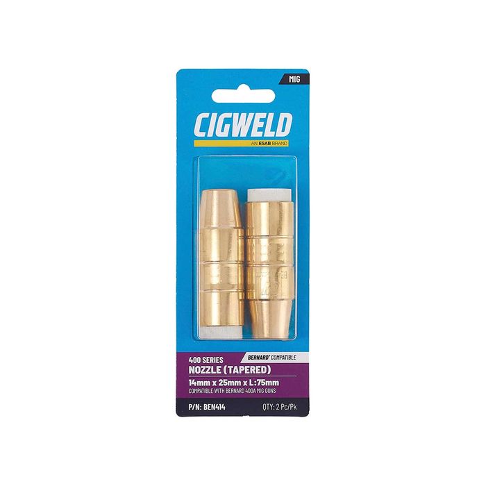- CIGWELD BERNARD 400 SERIES NOZZLE (TAPERED) 14MM X 25MM X L:75MM 2PK