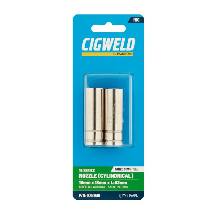 CIGWELD BINZEL 15 SERIES NOZZLE (CYLINDRICAL) 16MM X 18MM X L:53MM 2PK