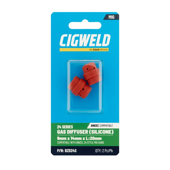 - CIGWELD BINZEL 24 SERIES GAS DIFFUSER (SILICONE) 9MM X 14MM X L:20MM 2PK