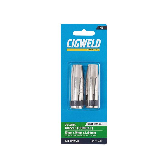 - CIGWELD BINZEL 24 SERIES NOZZLE (CONICAL) 13MM X 18MM X L:64MM 2PK