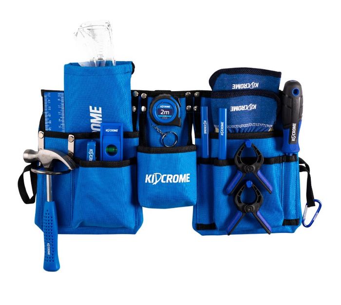 THE KIDS WANT TO BE JUST LIKE THEIR PARENTS! WITH THIS KIDCROME 14 PIECE TOOLSET COMES REAL CONSTRUCTION TOOLS THAT ARE SAFE FOR LITTLE HANDS, AND A TOOLBELT POUCH SO THEY CAN EASILY CARRY THEIR TOOLS AROUND DURING YOUR BUILDING AND CONSTRUCTION FUN AT HOME! WATCH THEIR YOUNG MINDS GO TO WORK!