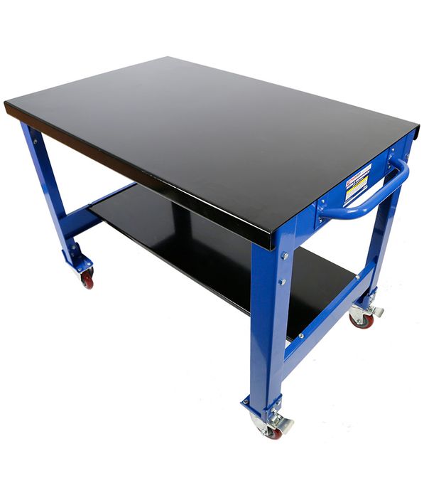 Features:STURDY STEEL CONSTRUCTION WORKBENCH. BOTTOM SHELF THAT ALLOWS UNOBSTRUCTED ACCESS. HIGH GLOSS ENAMEL FINISH. QUALITY CASTORS - TWO FIXED AND TWO LOCKING SWIVEL. HEAVY-DUTY HANDLE