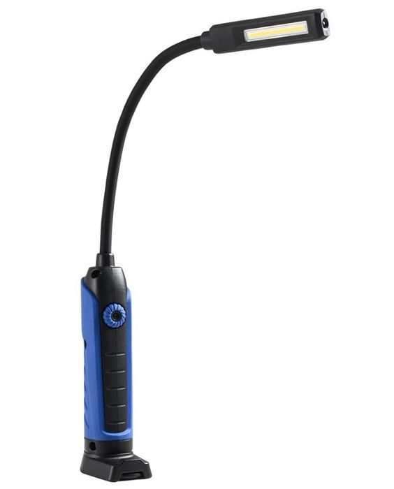 Features:MAIN LIGHT: 500 LUMENS 6500K COB LED, TOP LIGHT: 120 LUMENS 6000K SMD LED, FLEXIBLE STEM FOR ADJUSTABLE LIGHTING ANGLES, DIMMER DIAL, MAGNETIC BASE WITH 90° HOOK, USB C RECHARGEABLE, LED CHARGE INDICATOR, IP54 - DUST AND WATER RESISTANT