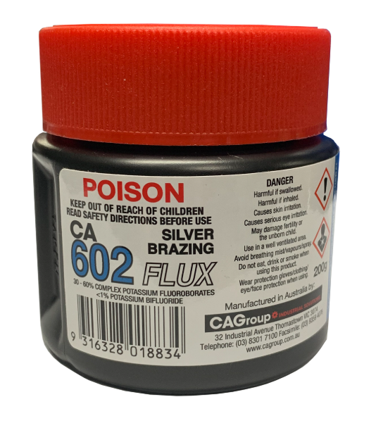 THE CA 602 200G IS A LOW TEMPERATURE AND GENERAL PURPOSE SILVER BRAZING ALLOY FLUX (PASTE).
