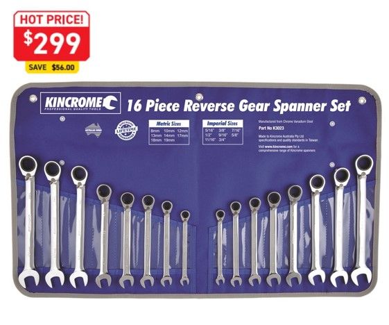 - KINCROME REVERSE GEAR SPANNER SET 16 PIECE - METRIC & IMPERIAL