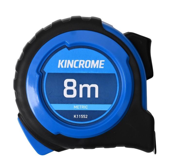 THE KINCROME 8M TAPE MEASURE FEATURES DURABILITY AND FUNCTIONALITY NEEDED BY PROFESSIONALS IN ALL TRADES. FEATURES INCLUDE A NYLON METRIC BLADE, TPR MOULD FOR EASY HANDLING AND A BELT CLIP FOR EASY ACCESS & STORAGE.