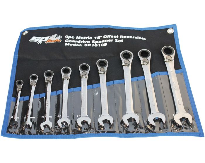 - SP TOOLS GEAR DRIVE ROE SPANNER SET - 15° OFFSET - 9PCE - METRIC