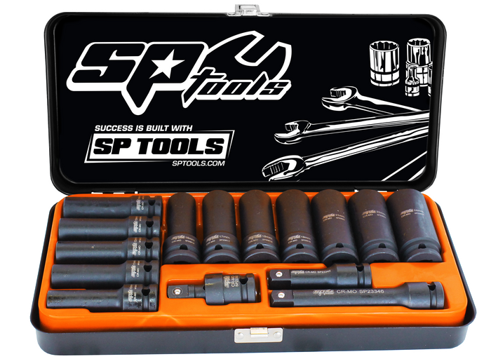 - SP TOOLS 1/2" DRIVE DEEP IMPACT SOCKET SET - 14PCE - 6PT SAE